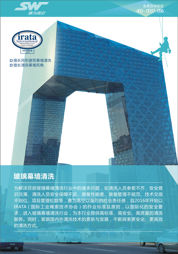 此文关键词:玻璃幕墙清洗,高空绳索服务,高空作业培训,IRATA培训,设施检验及维修
