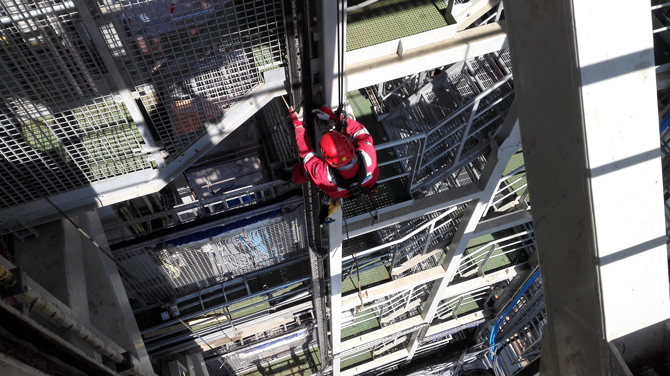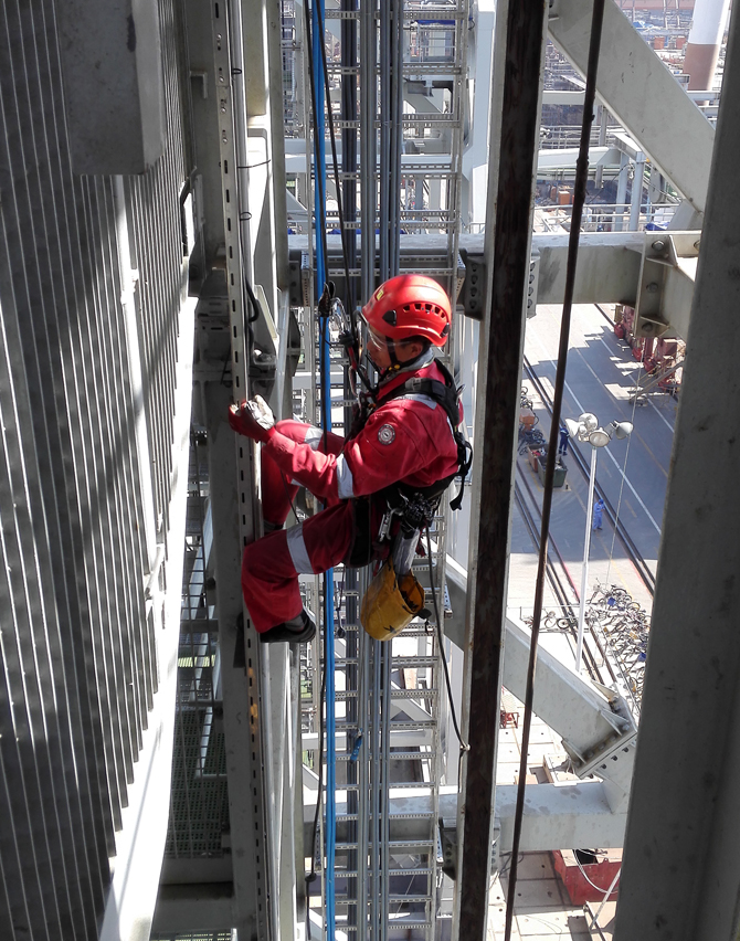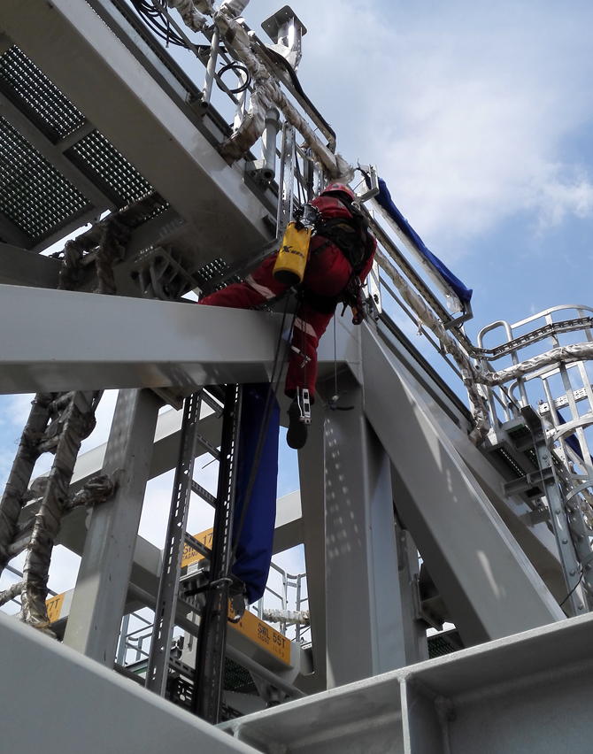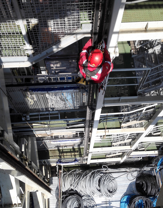 服务说明:结合高空绳索技术对井架电缆槽制作安装。